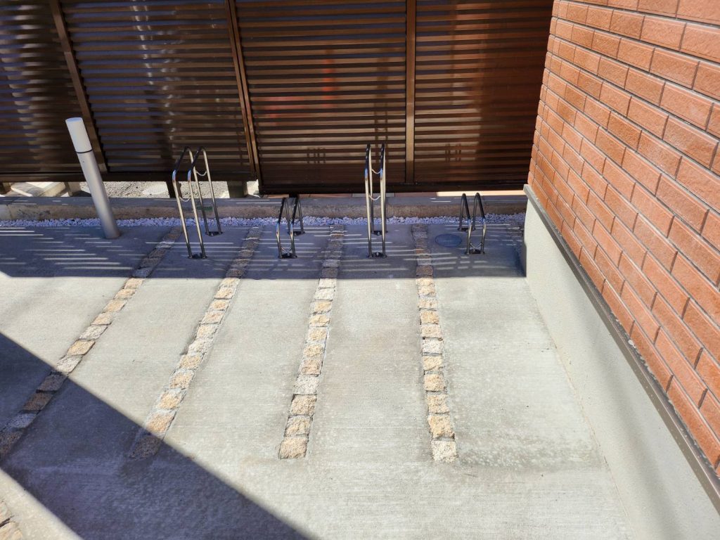 コンクリートを広い面積に敷く際はひび割れや雨水の浸透防止の為にスリットを入れます。